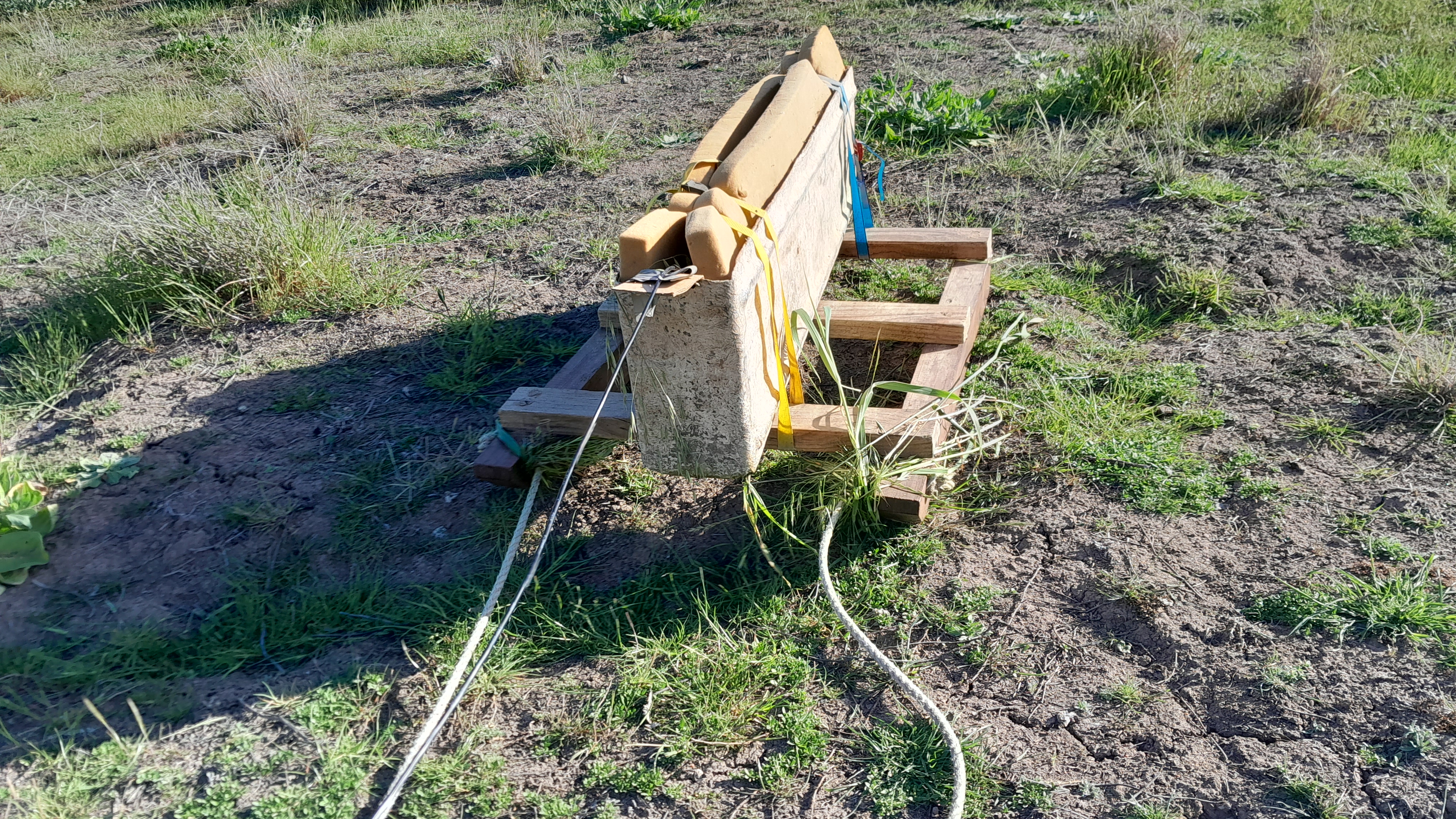 The second photo presents a more rudimentary rope-towed sled that might seem rough and ad-hoc however it does have all the properties needed for successful EM38 survey including endurance and has covered many thousands of kilometres. We also use conveyor belt rubber sleds but can confirm that their ground friction is frustrating.