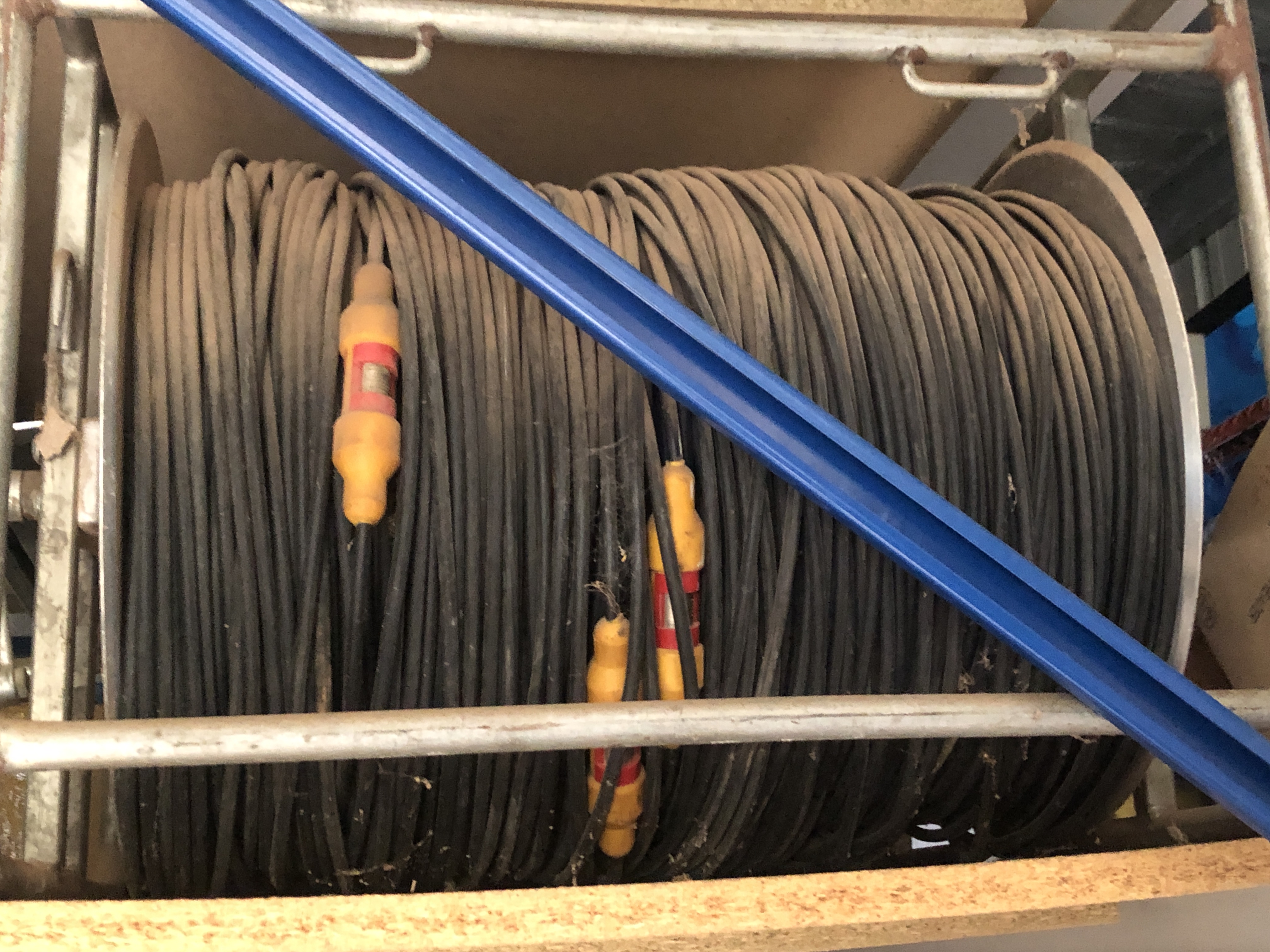These 7 reels of seismic cable with takeouts came with the Geometrics Seismic acquisition system owned by NSW Water. The reels are galvanized steel with bearings and will take considerable wear and tear.