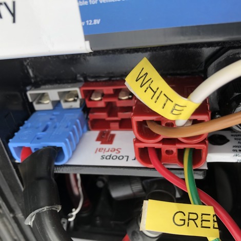 The early transmitters allowed all loop and battery connections to be made in one bank of Anderson connectors inside the box.